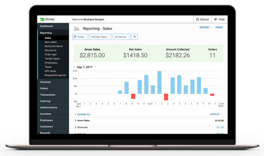 Identify the best and worst performing items, locations, times, and team members with Clover’s sales tracking system.